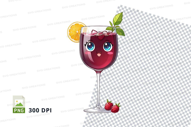 Illustration Cartoon Mockup Strawberry Lemon Transparent Background Wine Glass Red Wine