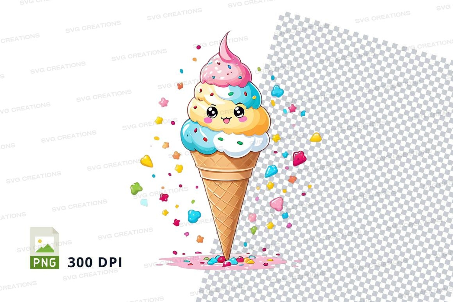 Character Whimsical Png Ice Cream Cone Sprinkles 300 Dpi Clipping Path