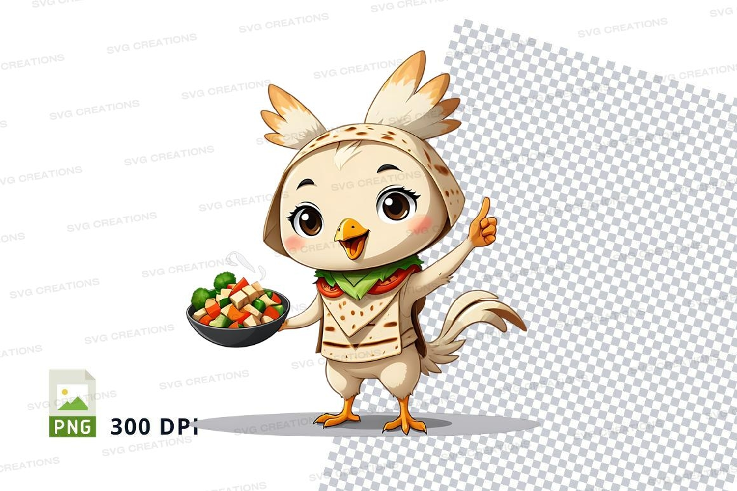 Illustration Cartoon Food Png Transparent Background Chef Chicken Salad Bowl 300 Dpi