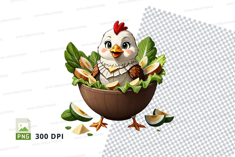 Similar Design Products to Cartoon chicken in salad bowl clipart png