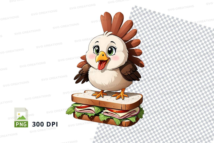 Cartoon chicken character on sandwich clipart png example image 1