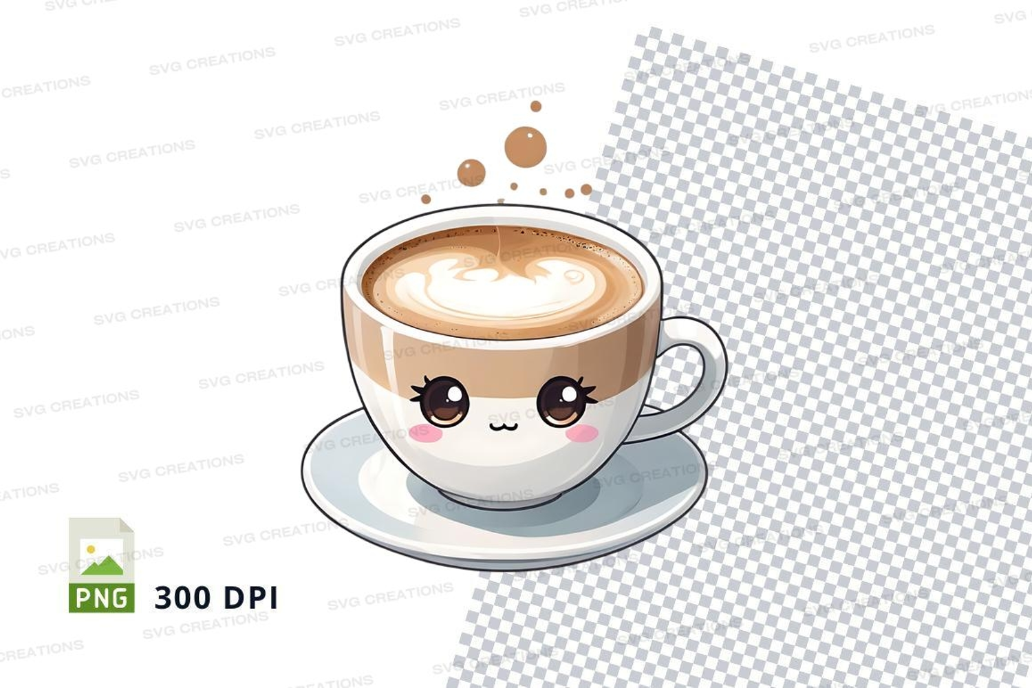 Coffee Mockup Coffee Cup Saucer Cute Face Dotted Background Frothy