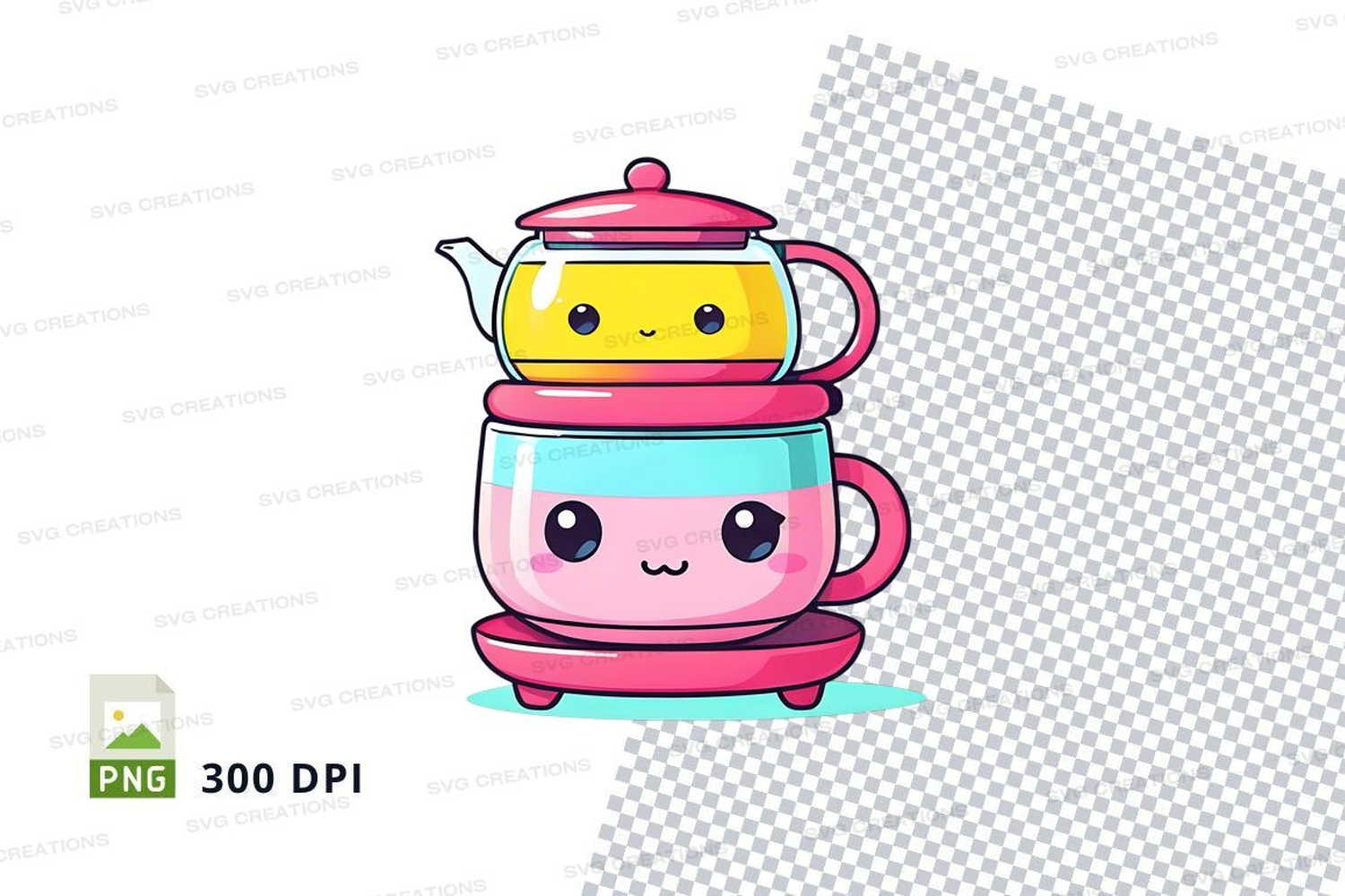 Similar Design Products to Cute teapot and cup stack clipart png