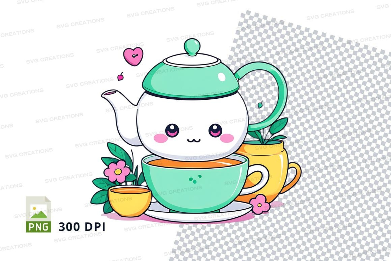 Illustration Cartoon Flowers Clipart Png Tea Pastel Plants Teapot Teacup