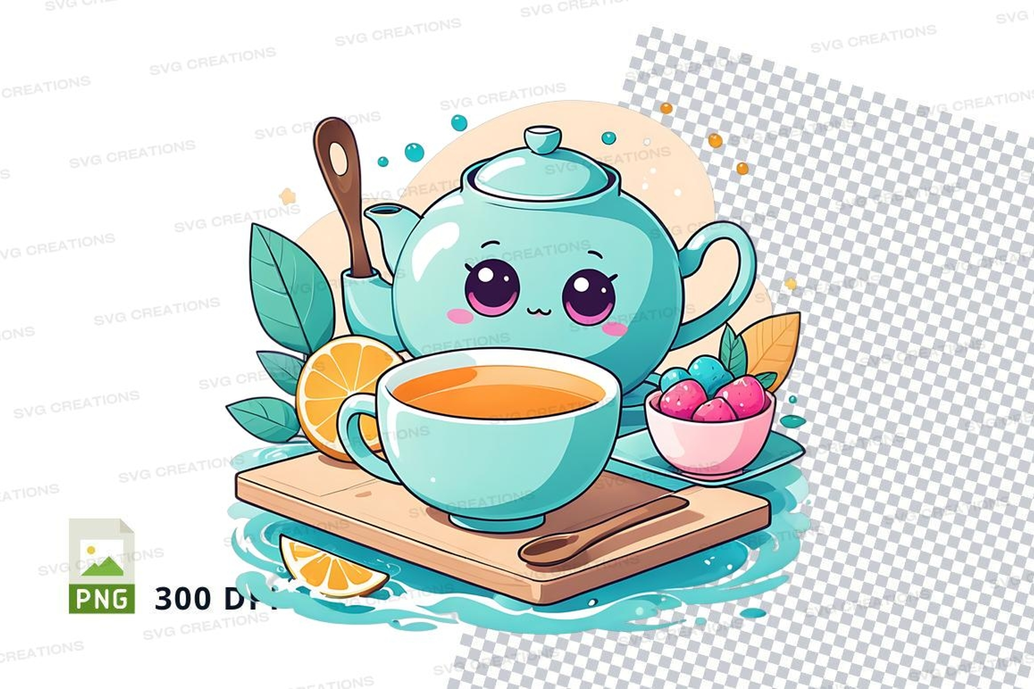 Fruit Whimsical Clipart Leaves Png Tea Teacup Tea Kettle