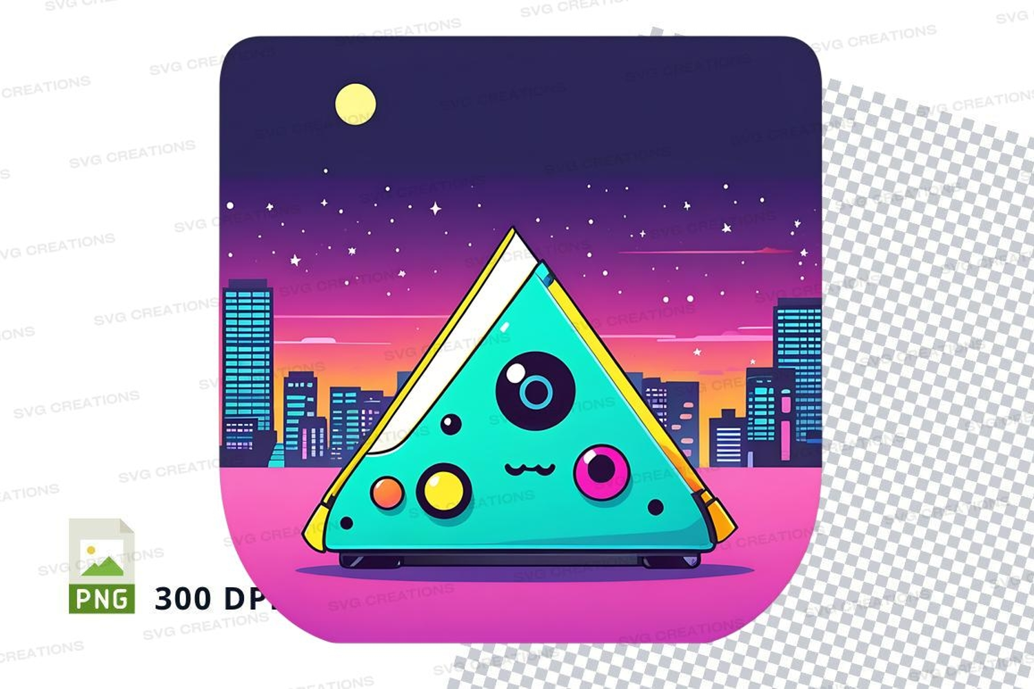 Illustration Cartoon Funny Whimsical Colorful Sunset Triangle Cityscape Eyes Legs