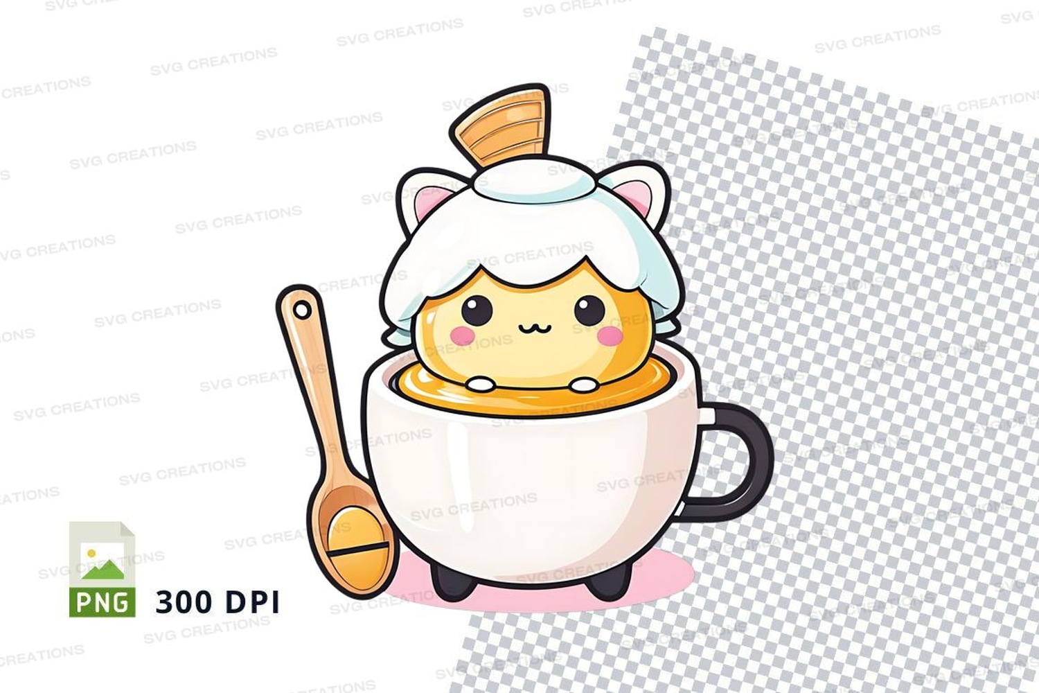 Illustration Cartoon Whimsical Cute Clipart Cat Kitty Spoon Teacup