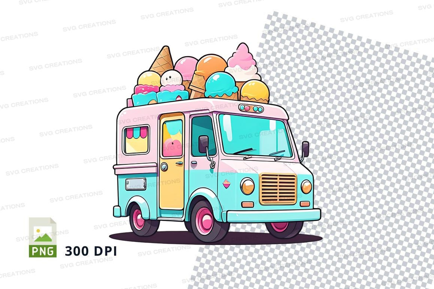 Illustration Cartoon Summer Colorful Clipart Ice Cream Truck Cones Ice Cream Truck Scoops