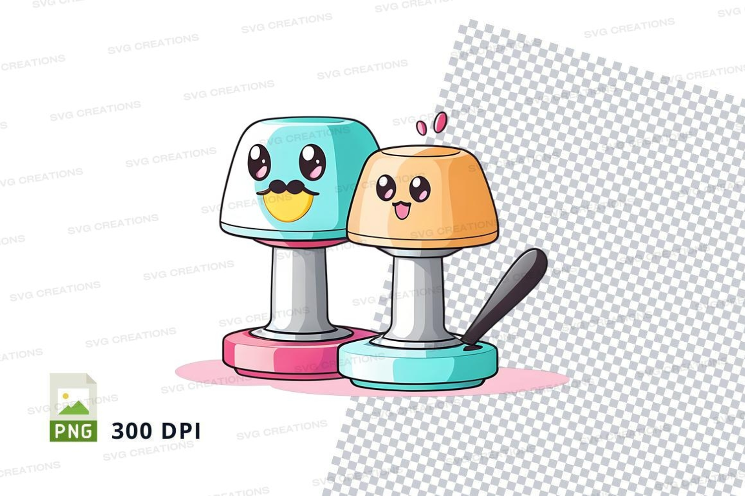 Illustration Cartoon Funny Mockup Characters Mushroom Accessories Spoon Facial Expressions Pink Platform