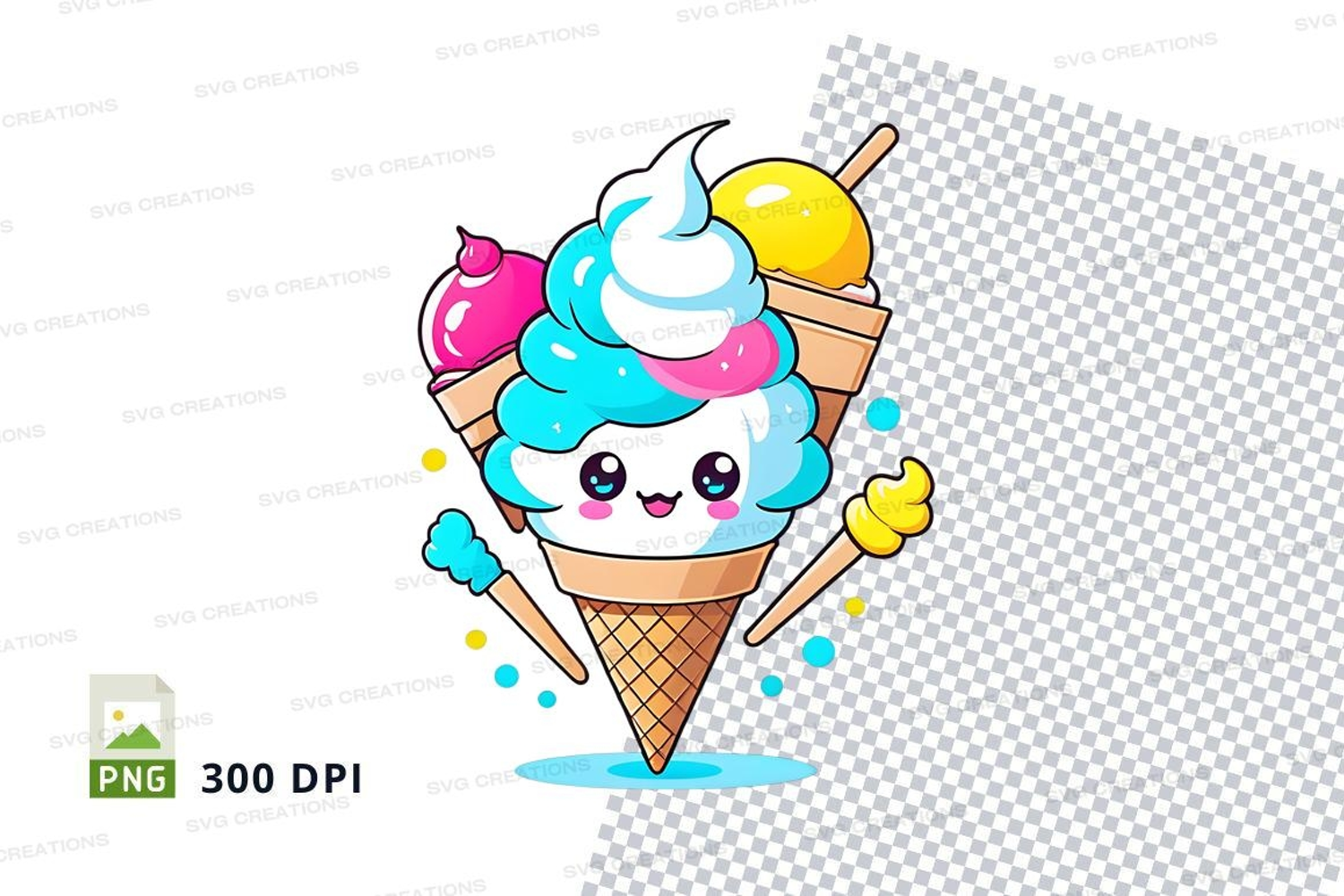 Illustration Cartoon Whimsical Friendly Colorful Clipart Png Ice Cream Ice Cream Cone Scoops