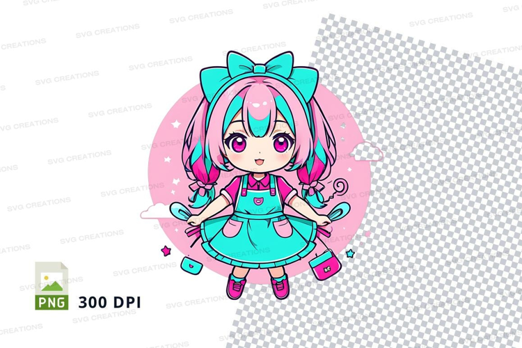 Character Cartoon Clothing Girl Bow Cheerful Anime Pink Hair Turquoise Dress