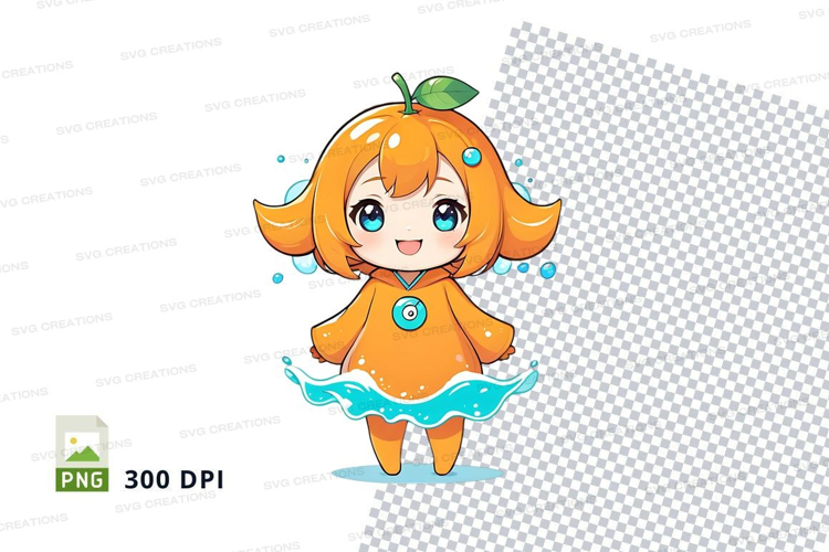 Character Cartoon Fruit Leaf Girl Water Dress Clipart Orange Png