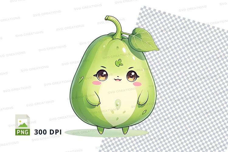 Illustration Cartoon Fruit Cute Green Leaf Clipart Face Pear White