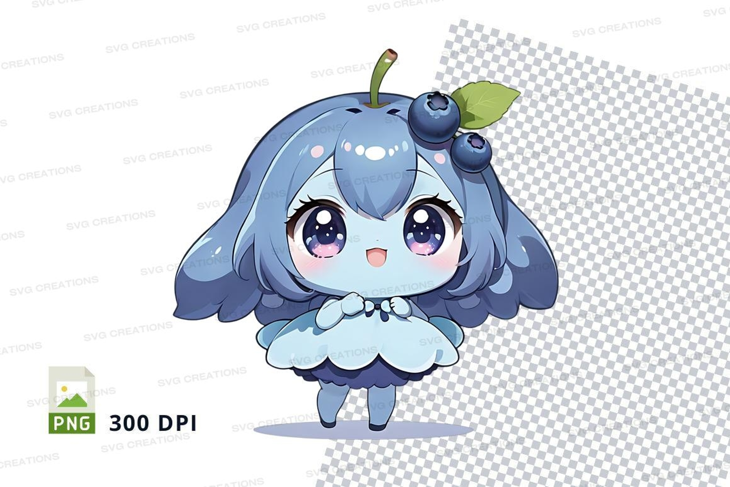 Character Cartoon Cute Png Blueberry Transparent Background 300 Dpi Blue Dress Blue Hair