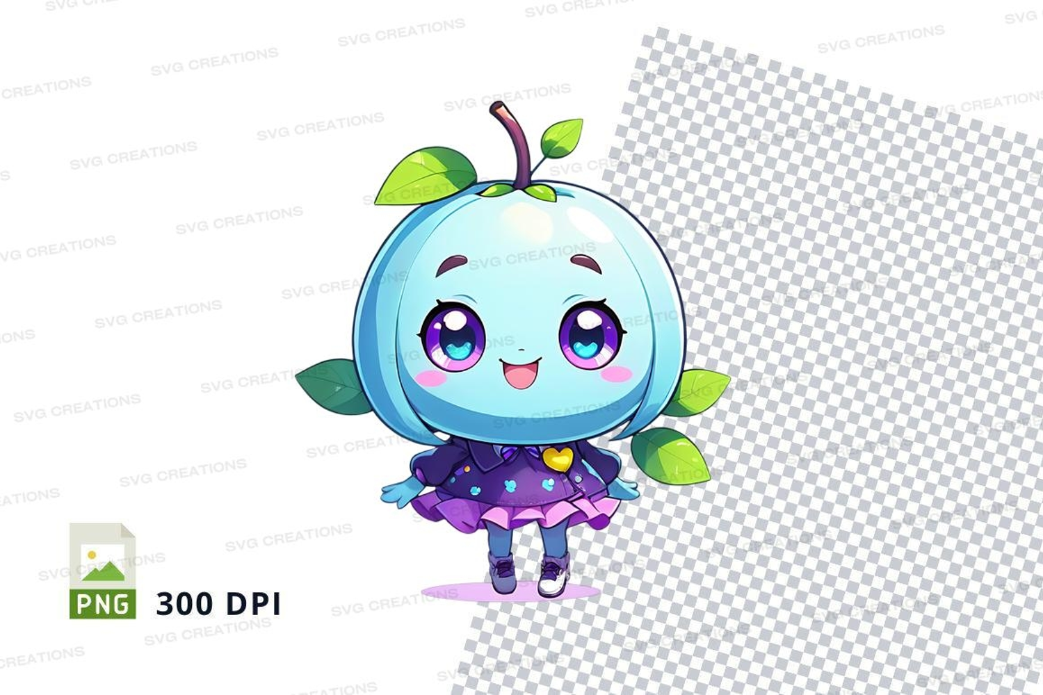 Character Cartoon Cute Dress Purple Yellow Face Apple Transparent Polka Dots