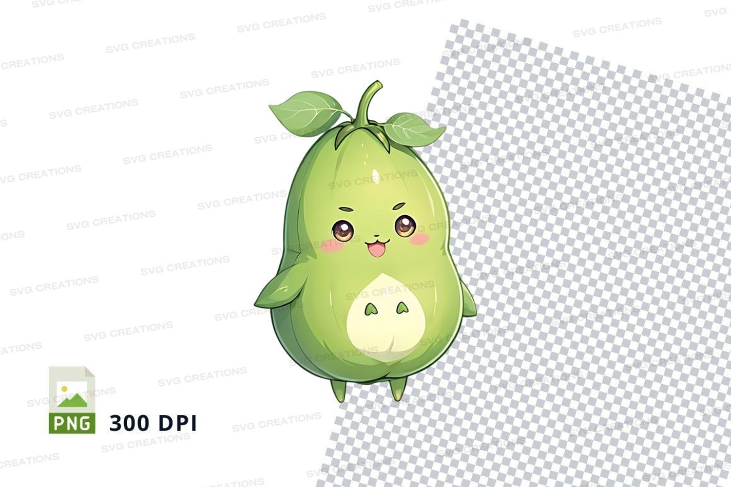 Illustration Character Cartoon Cute Green Clipart Pear Png 300 Dpi