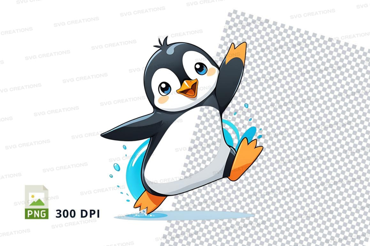 Illustration Cartoon Animal Water Clipart Png Cheerful Penguin Wave 300 Dpi
