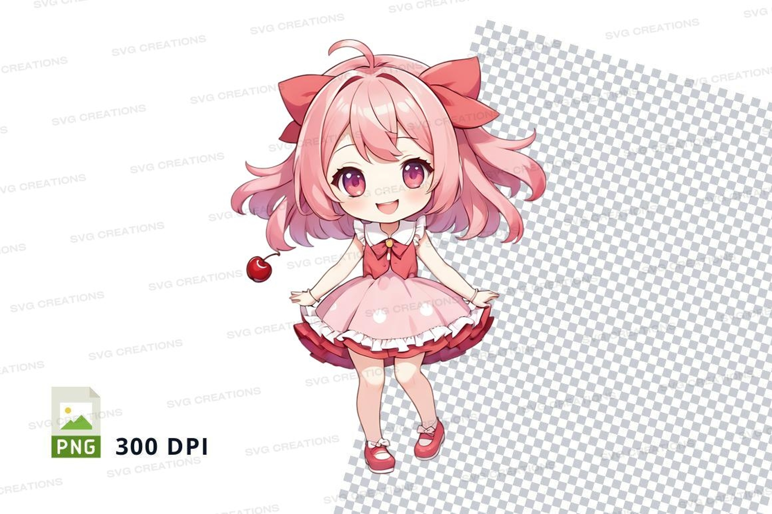 Illustration Character Cartoon Pink Girl Heart Dress Clipart Bow Anime