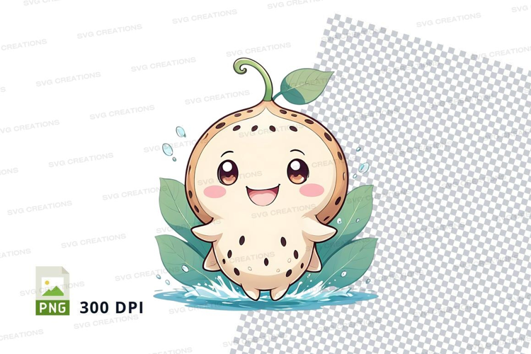 Illustration Cartoon Cute Leaf Clipart Garlic Smiling Face Water Droplets
