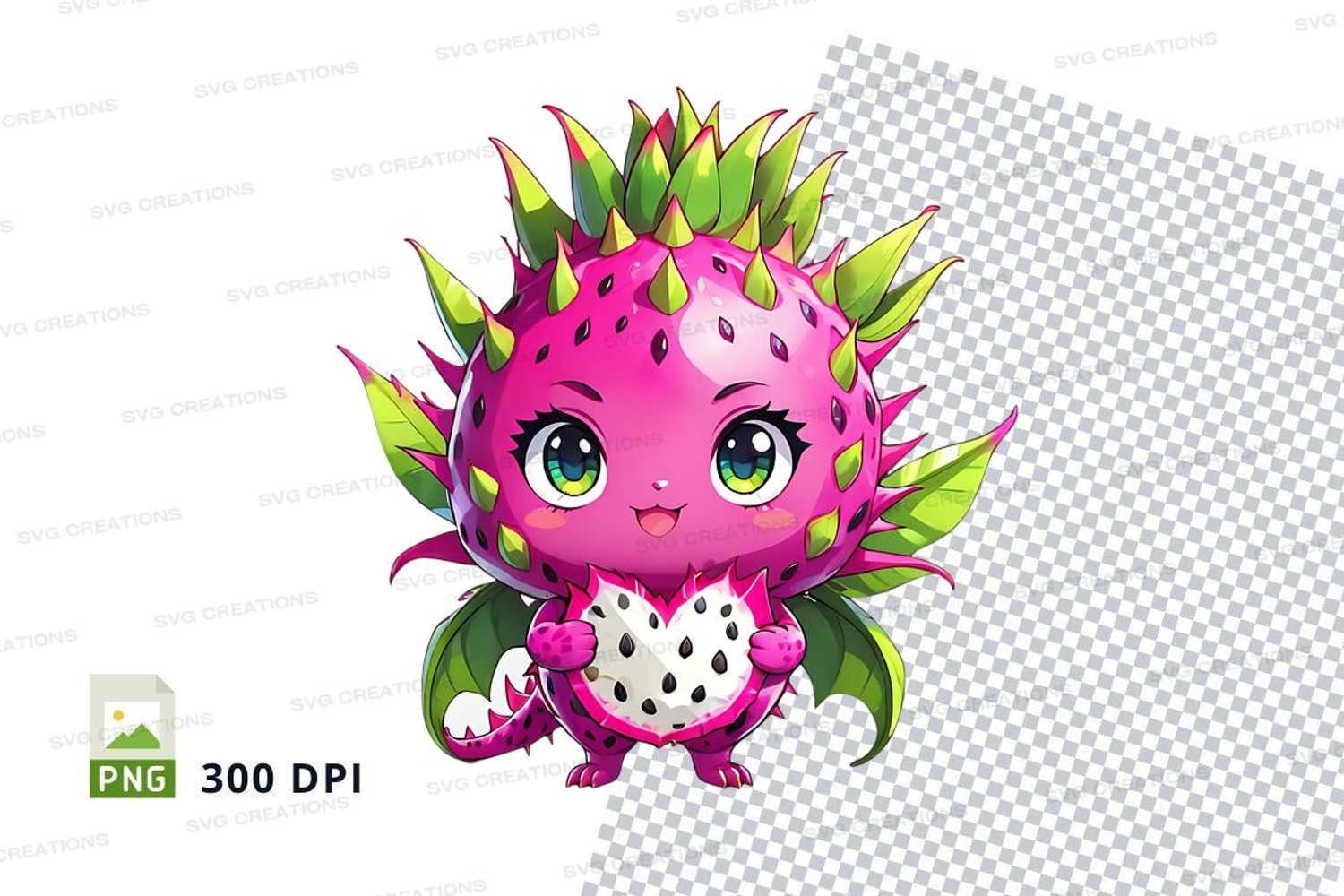 Illustration Cartoon Fruit Cute Pink Green Clipart Face Dragon Fruit Legs