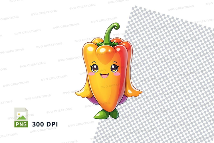 Illustration Character Cartoon Whimsical Green Clipart Orange Transparent Background Smiling Bell Pepper