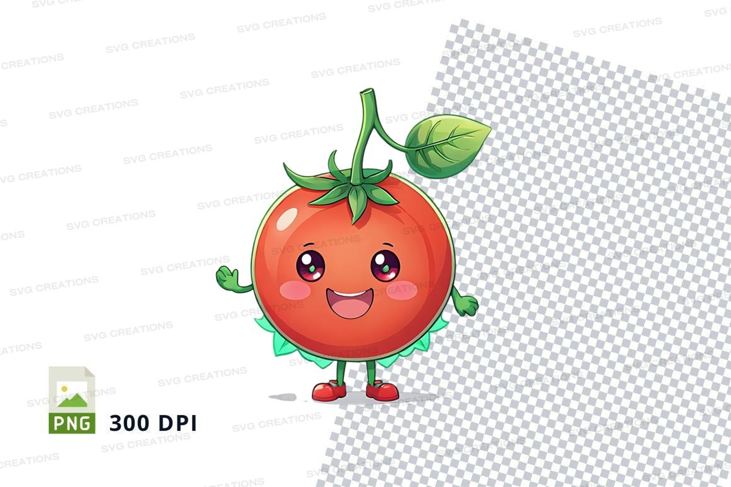 Character Cartoon Cute Green Clipart Tomato Png Stem Smiling 300 Dpi