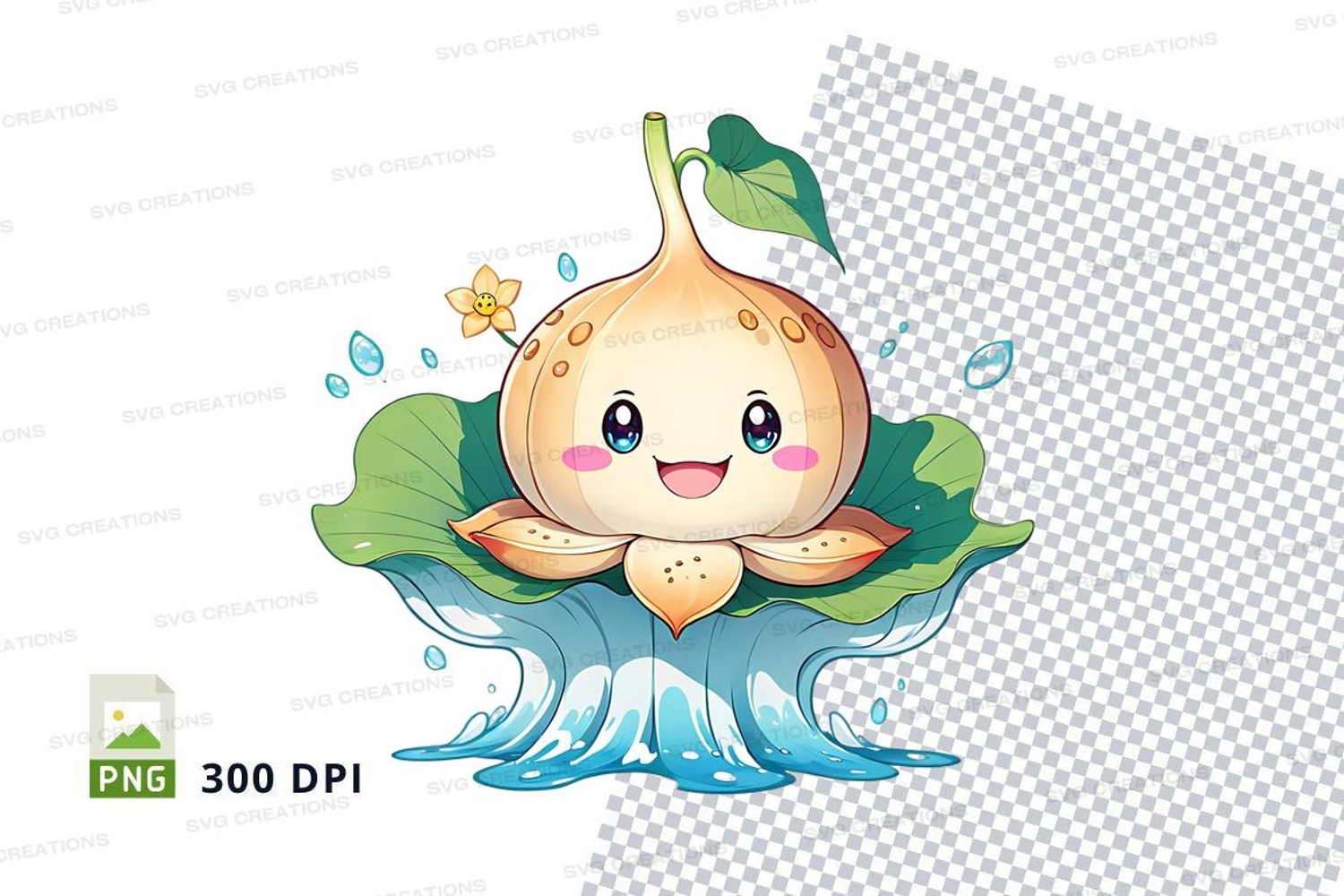 Illustration Cartoon Funny Clipart Leaves Onion Vegetable Happy Face Water Droplets