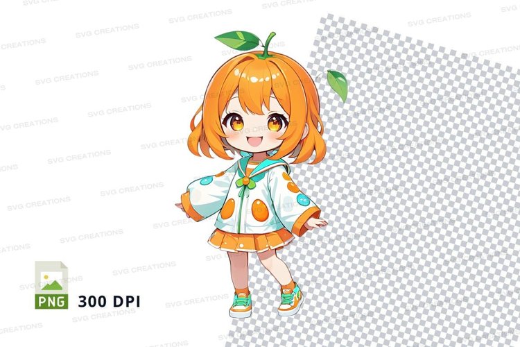Illustration Character Cartoon Cute 300 Dpi Dotted Background Orange Hair Orange Dress