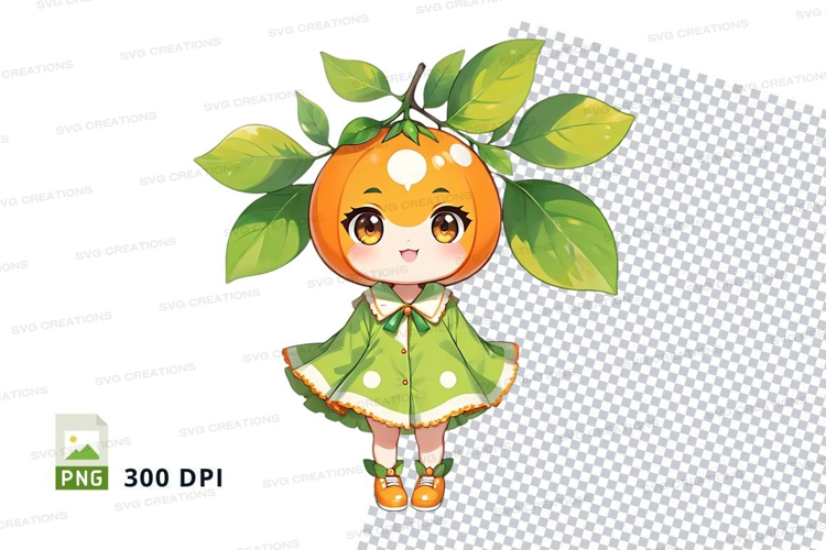 Illustration Character Cartoon Fruit Cute Girl Dress Leaves Orange Polka Dots