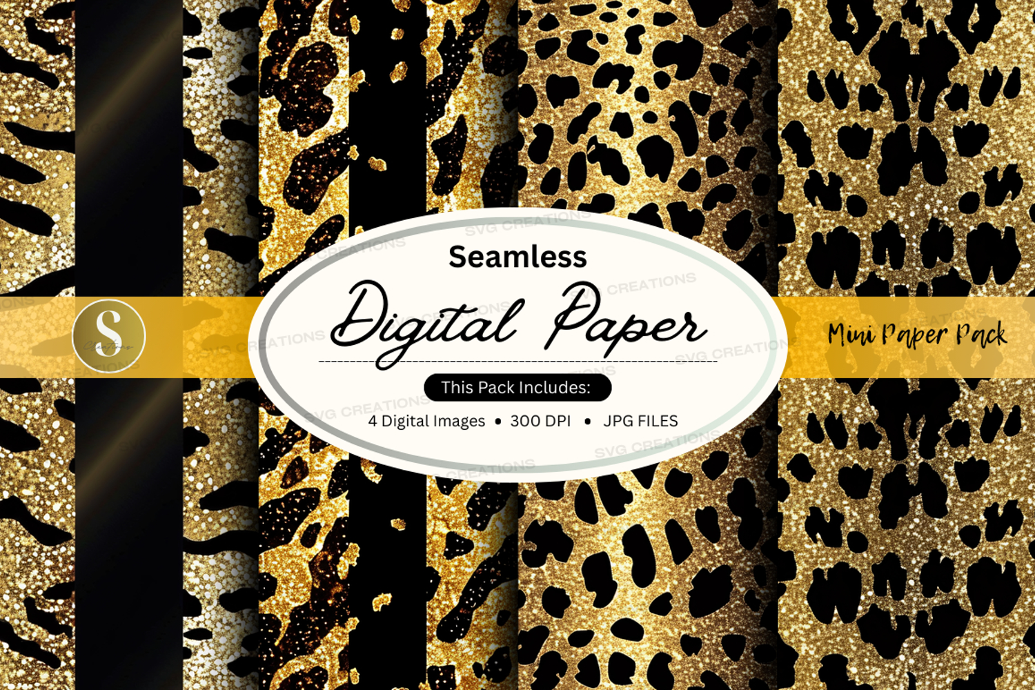 Gold Black Digital Paper Digital Background Seamless Pattern Leopard Print 300 Dpi Jpg Files