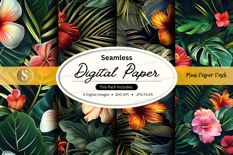 Digital Paper Tropical Flowers Digital Background Seamless Pattern Floral Design Tropical Leaves 300 Dpi Jpg Files