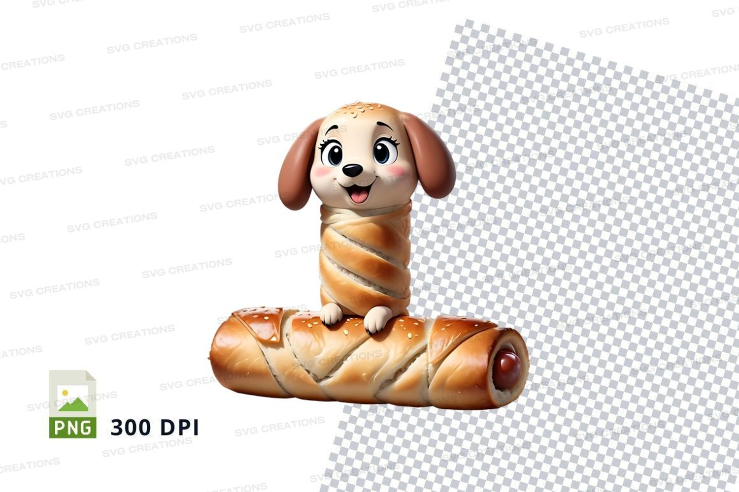 Similar Design Products to Cartoon dog wrapped in bread clipart png