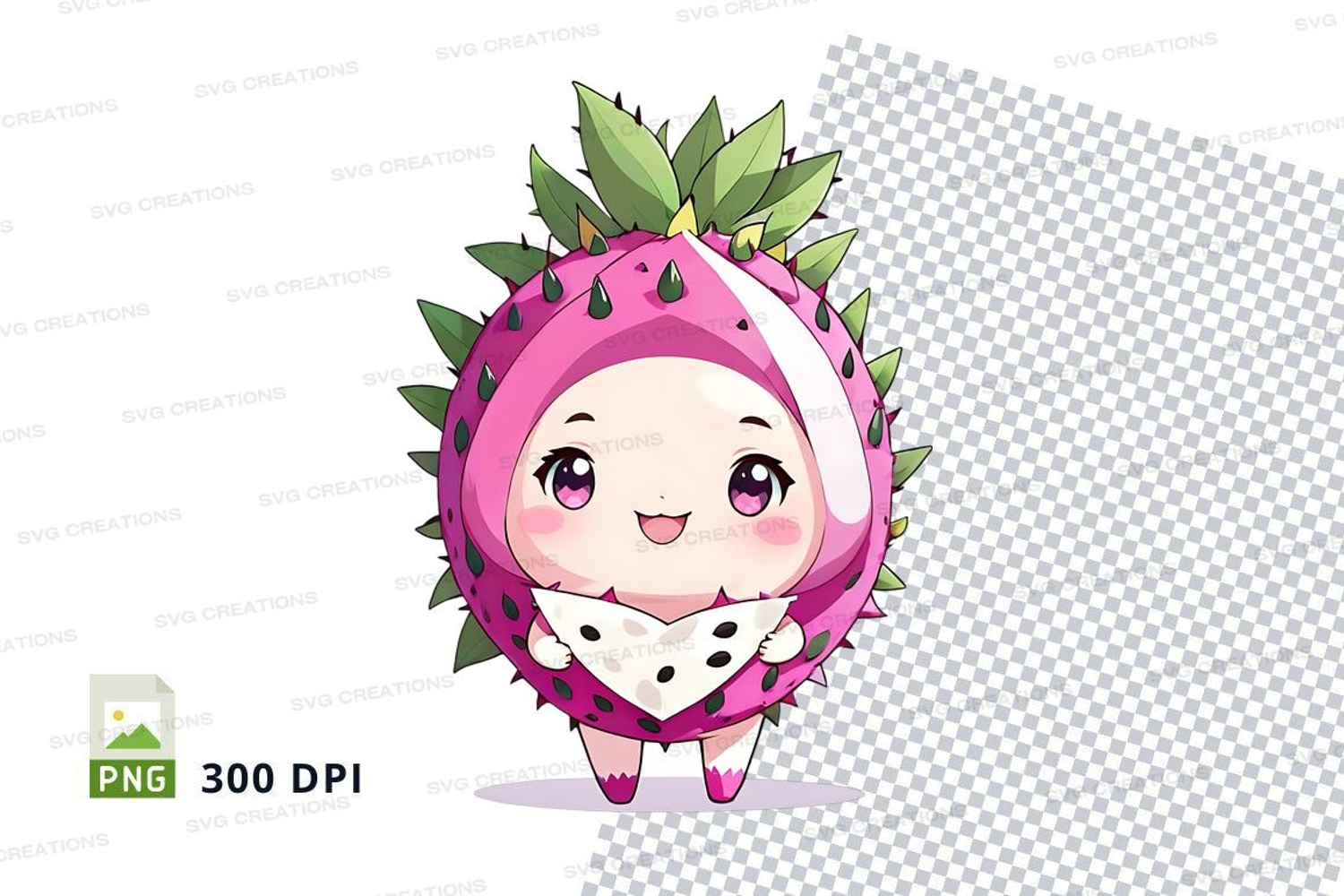 Cute dragon fruit character clipart png example image 1