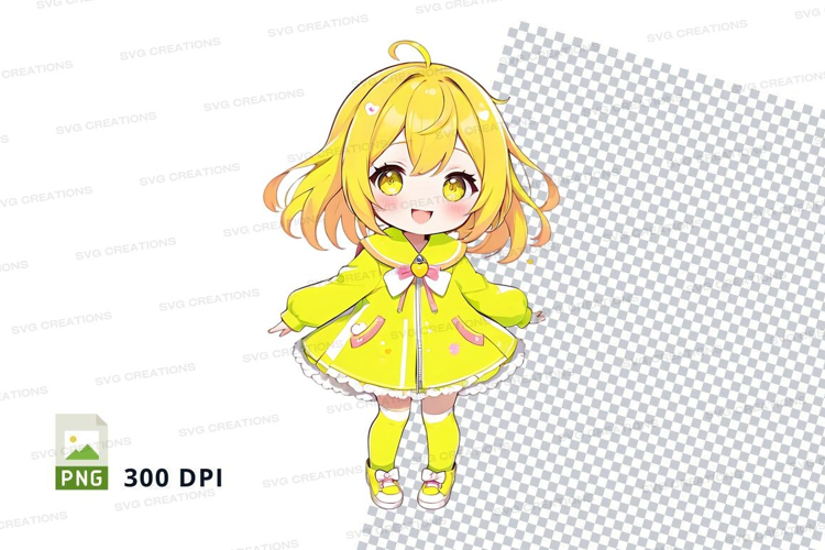 Cartoon Girl Yellow Hair Transparent Background Blonde Outfit 300 Dpi Large Eyes