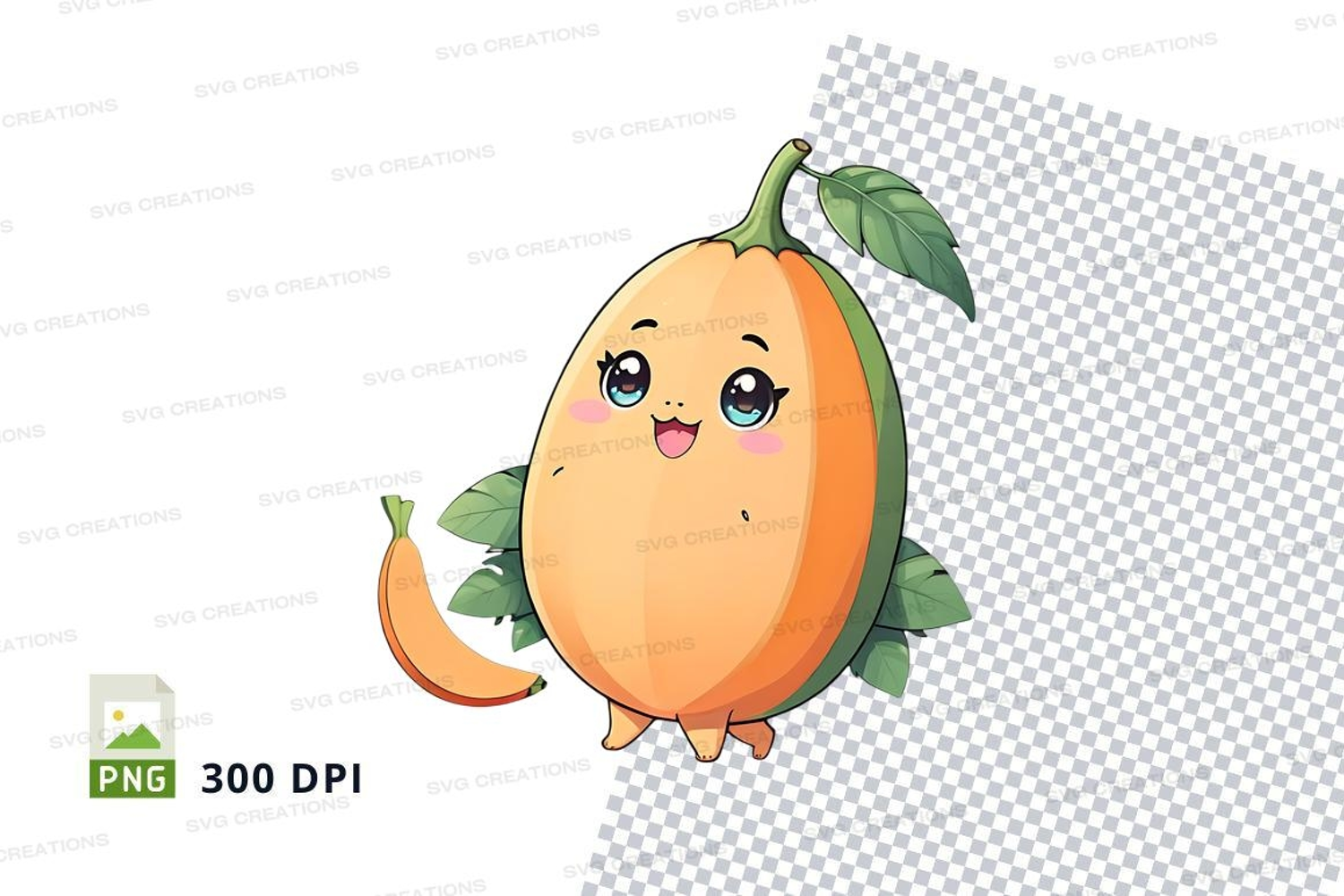 Illustration Cartoon Fruit Cute Clipart Mango Png Cheerful 300 Dpi