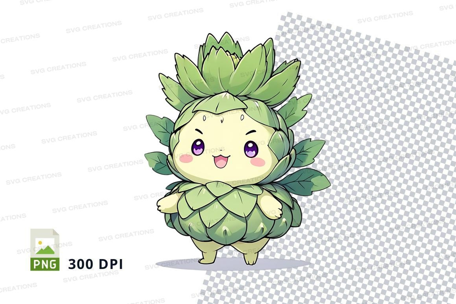 Illustration Character Cartoon Cute Green Clipart Leaves Pineapple Happy Face Big Eyes