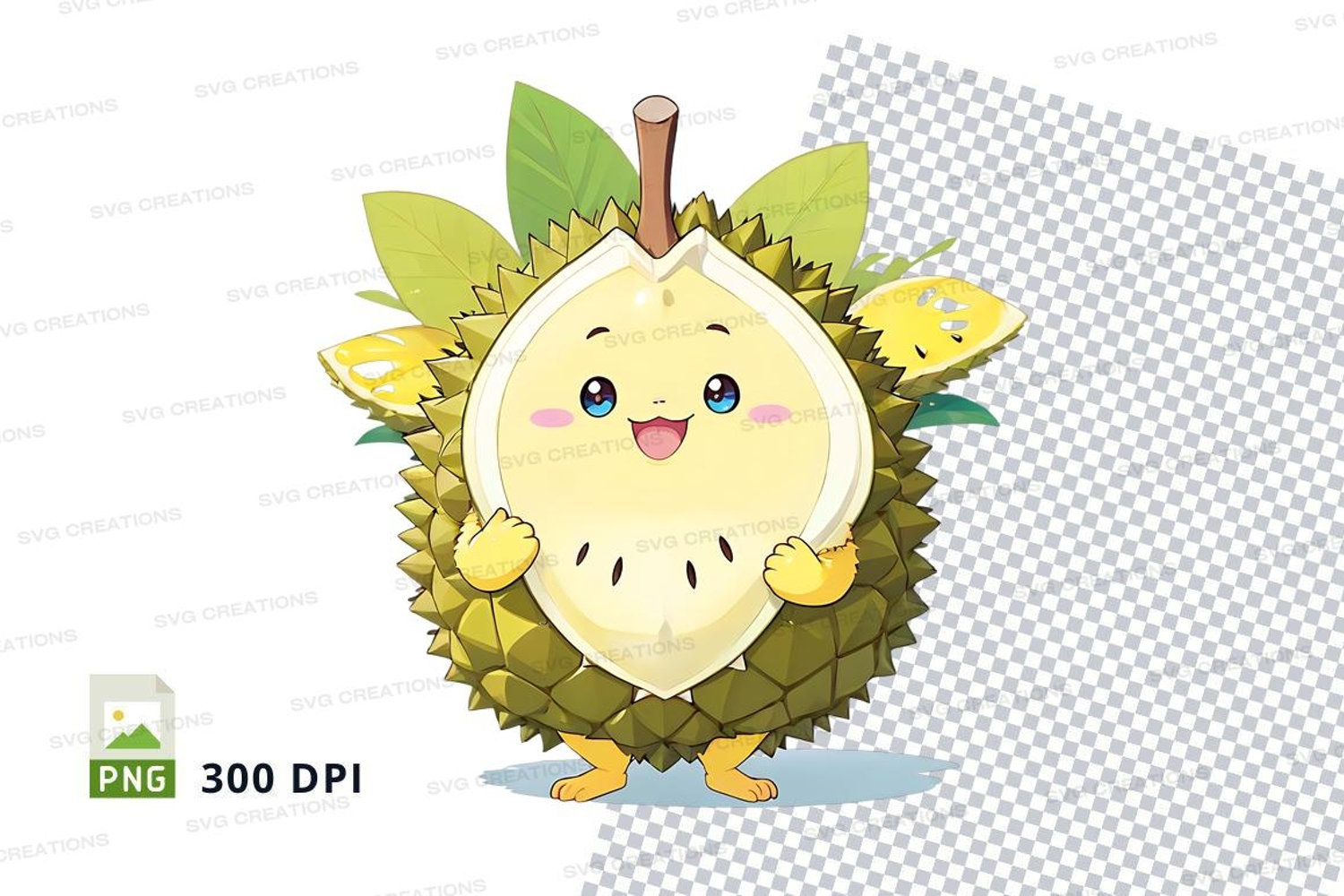 Illustration Character Cartoon Funny Fruit Cute Leaves Smiling Durian Stems