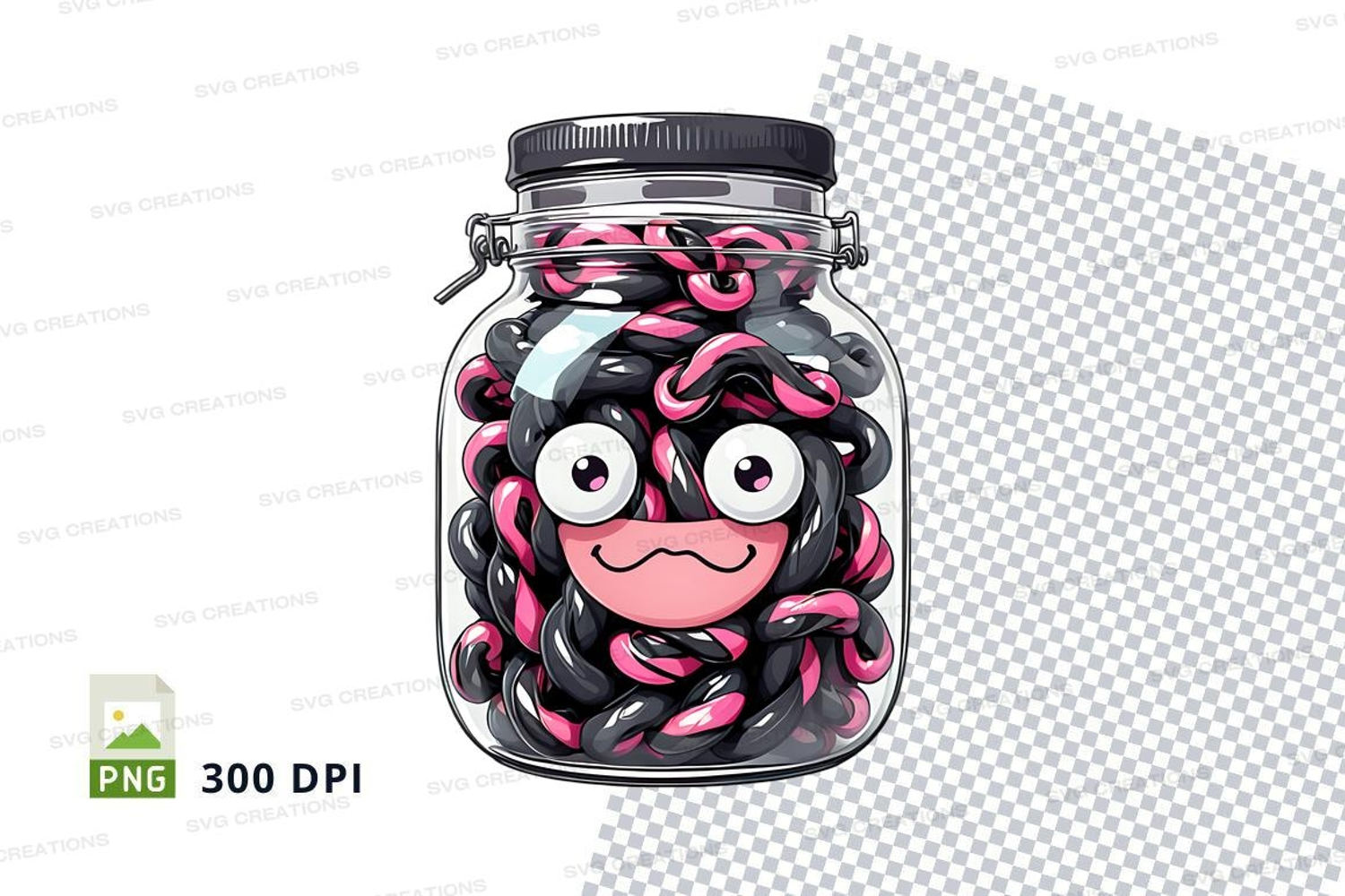 Illustration Cartoon Funny Food Cute Candy Mockup Glass Jar Licorice