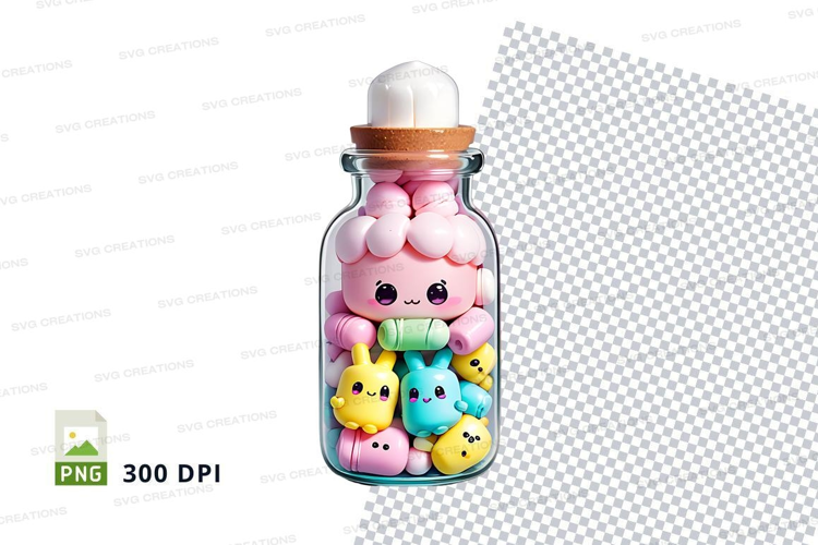 Glass jar with pastel character toys mockup example image 1