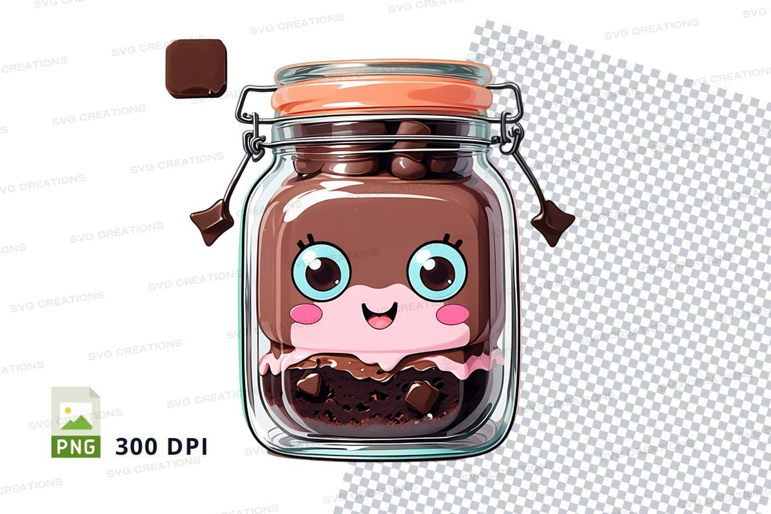 Png Glass Jar Cartoon Character 300 Dpi Food Clipart Cute Illustration Chocolate Chips Chocolate Jar