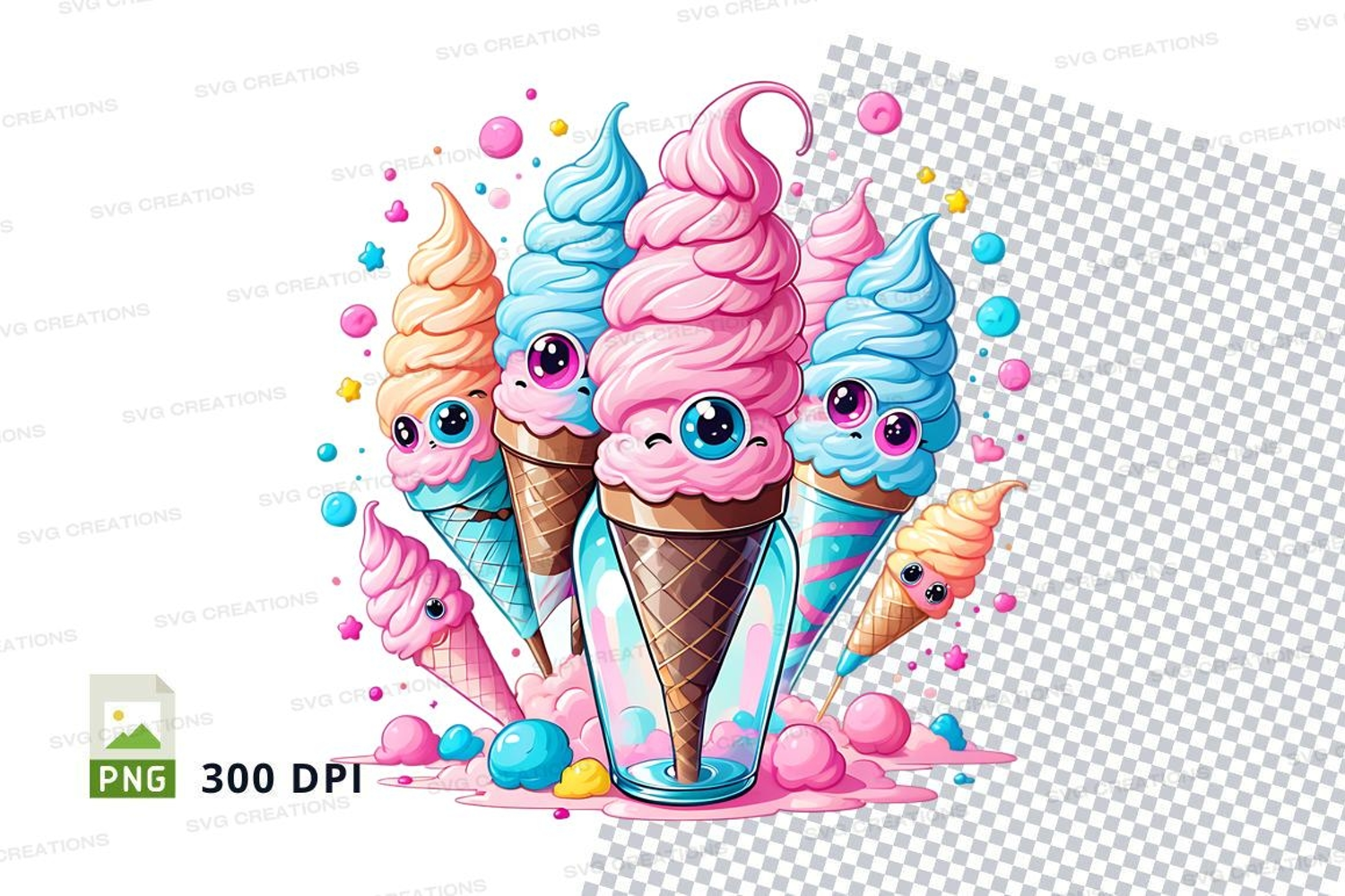 Illustration Cartoon 3d Colorful Mockup Ice Cream Sprinkles Cones Funny Faces