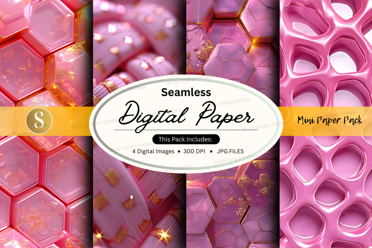 Similar Design Products to Pink Seamless Digital Paper Pack Hexagon Pattern Background