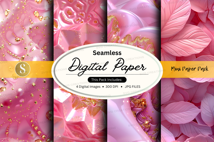 Pink seamless digital paper pack floral textures background example image 1
