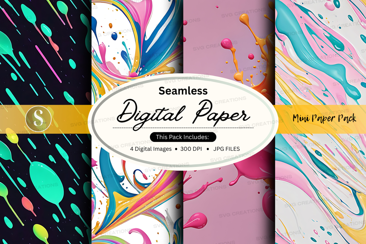 Similar Design Products to Seamless digital paper pack with vibrant watercolor textures
