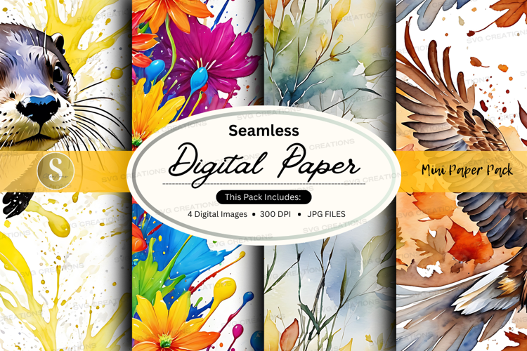 Similar Design Products to Seamless digital paper pack with floral watercolor textures