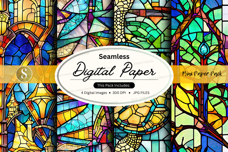 Seamless digital paper texture with stained glass pattern example image 1