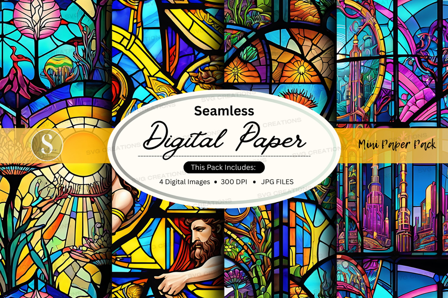 Vintage Texture Paper Colorful Digital Pattern Background Seamless Glass Stained