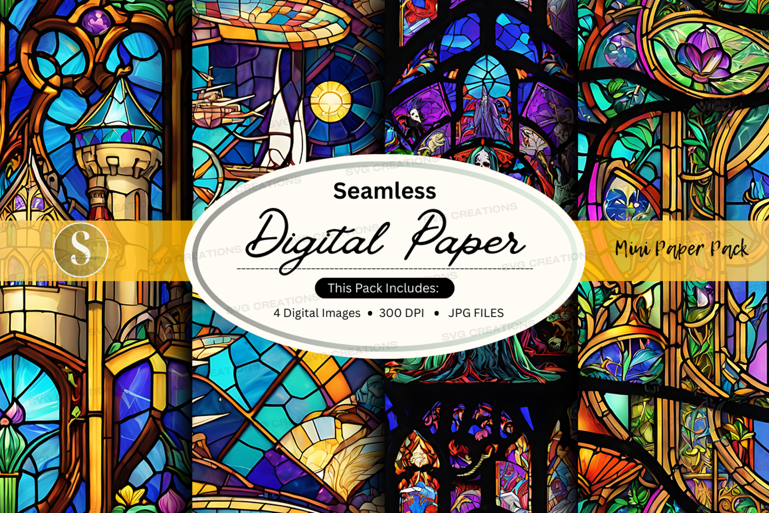 Seamless digital paper pack vintage stained glass texture ba example image 1