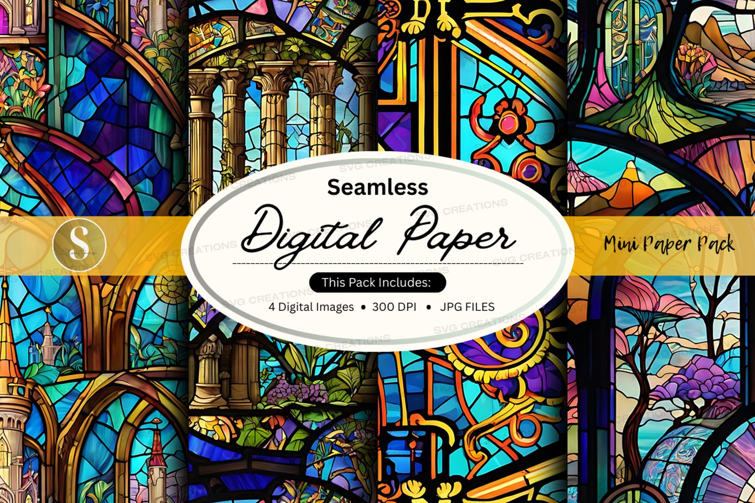 Seamless digital paper pack vintage stained glass textures b example image 1
