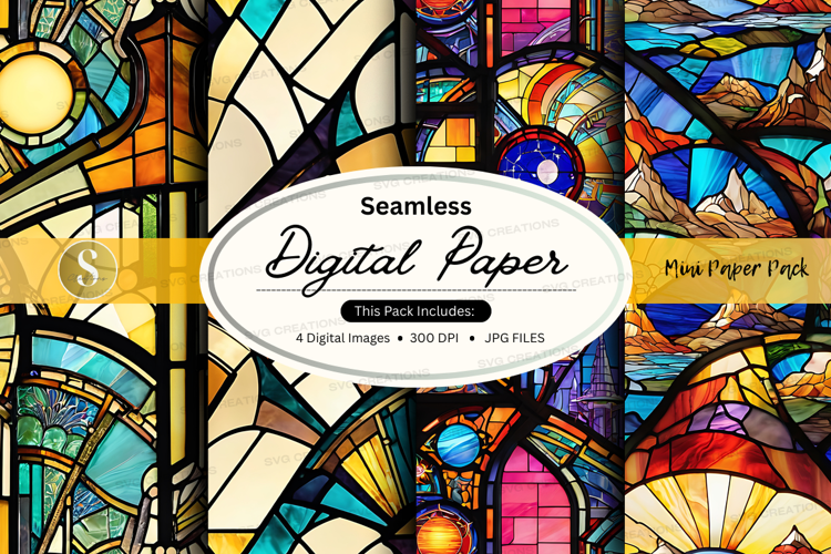 Vintage Texture Paper Colorful Digital Pattern Background Seamless Glass Stained